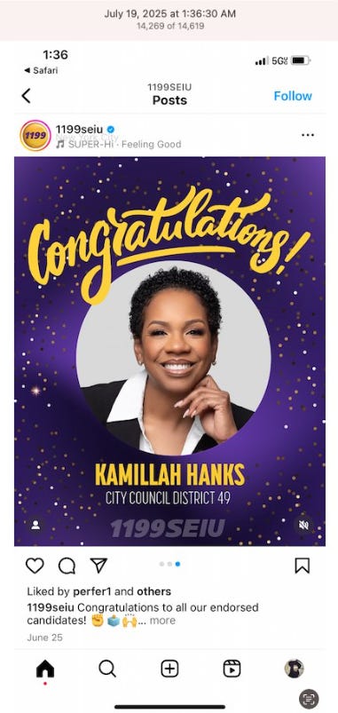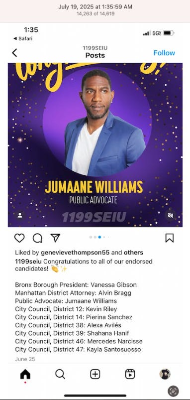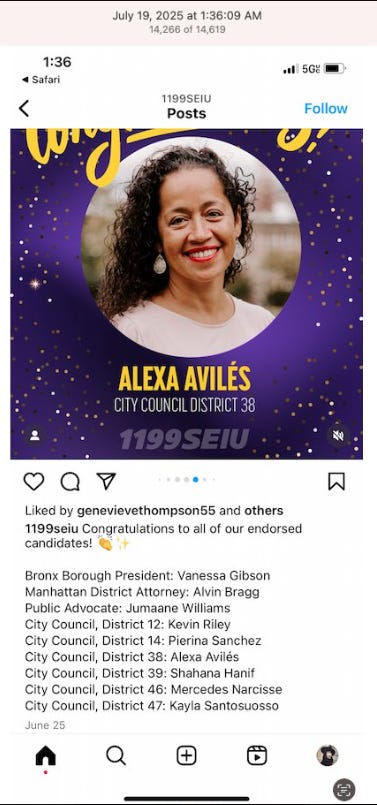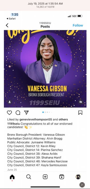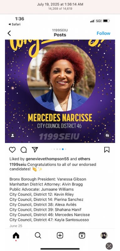 Screenshots above: City Council. Bronx Borough President. Public Advocate, who I notice is often quoted by publications harping on "white supremacy." City Council members. More City Council Members. Isn't it funny how every person 1199 SEIU endorsed got elected?