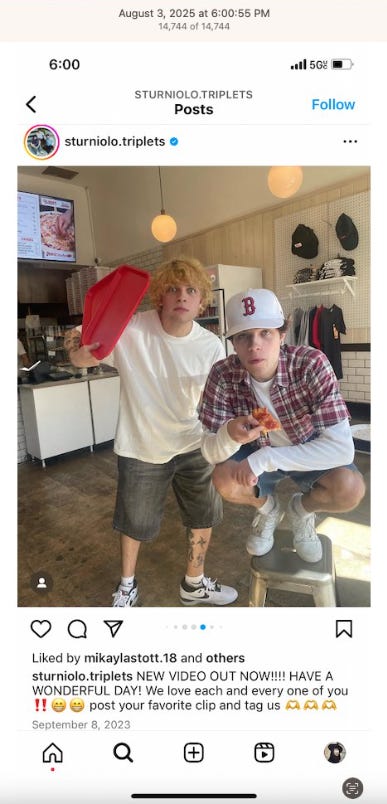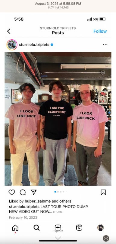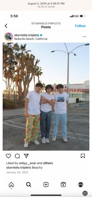 Screenshots above: The one with the arm tattoos looks to have the familiar panther tattoo on his leg. This is probably why they had the app crash when I landed on the triplet’s Instagram.