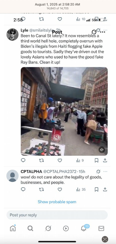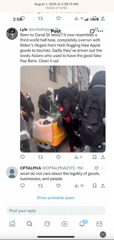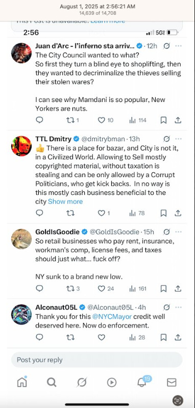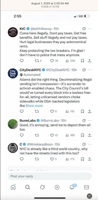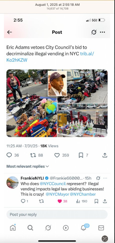 Screenshots above: I've come to expect nothing less from NYC City Council but advocating for criminals. Of course the City Council wants to decriminalize illegal vending! Anything to make the criminals lives easier and law-abiding citizens' lives harder. You can feel the shock and anguish from the comments. Exactly my sentiments. Chinatown does indeed look like what's in the images, and so does Union Sq, Herald Sq, Times Sq, and I'm sure other areas.