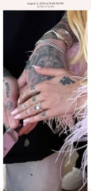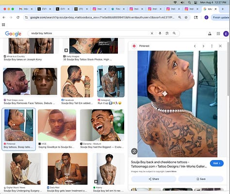 Screenshots above: 2022, no tattoos. 2023, one of them has nearly armful of tattoos. Their Instagram shows them to have graduated high school in 2021.