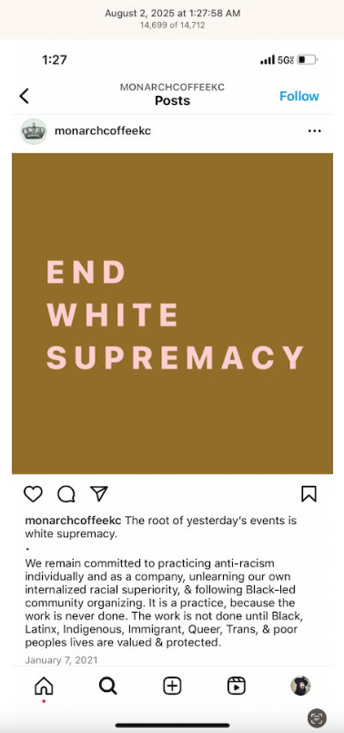 Screenshots above: Examples of the same themes over and over and over online and everywhere else in the world, along with a business politicizing its customers’ experience for something as simple as getting coffee. Imagine going to coffeeshop as a white person and you’re bombarded with End White Supremacy. How offensive! And as a taxpayer, funding all the social services that keep migrants and other POC afloat. I cannot imagine being a white parent and having to tell my child what “white supremacy” is. If I were in that situation I’d say, Don’t worry about it. You can’t help it that you’re, what other’s call, “supreme.” You’re only doing what you’re meant to do—use your brain to advance. Don’t for a second feel guilt for being white and for being who you are.