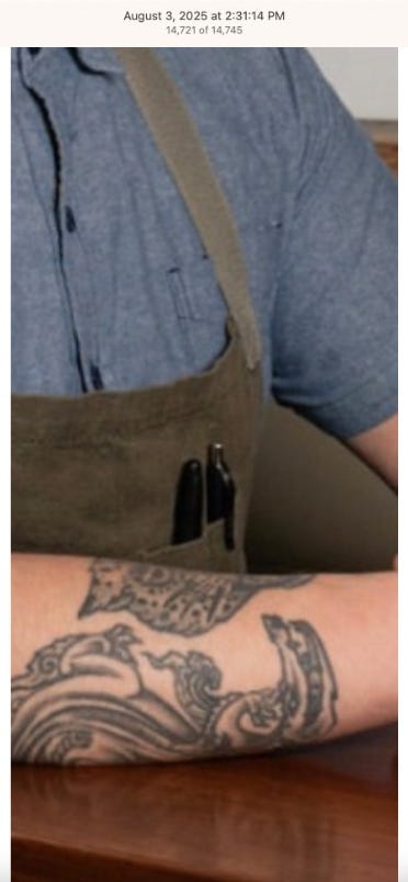 Screenshot above: Gramercy Tavern and big cat hand tattoo.