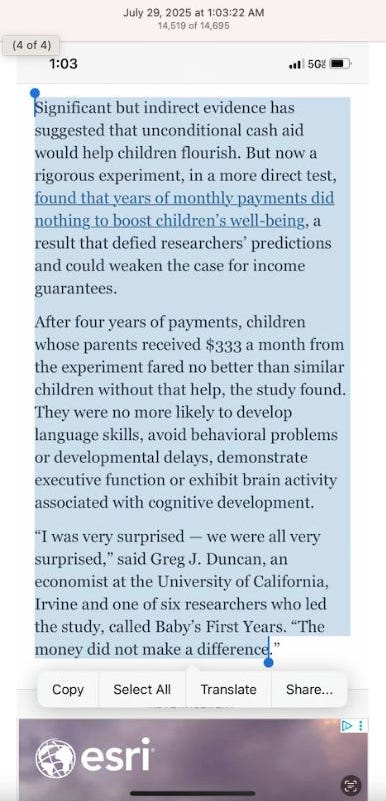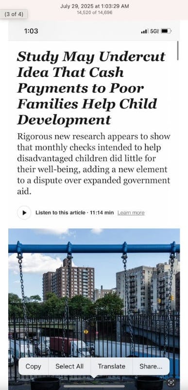 Screenshots above: Money in itself is inanimate; it doesn't know how to make itself useful. It's the person who's spending it and if she making poor choices in life, having money isn't going to change that. It'll only encourage making more poor choices. It all begins with parenting and that's not society's job, but the parents'. I didn't have parents and I still turned out to be a decent person. What's their excuse. You can always tell which articles are criminally influenced because the articles are counter-intuitive and an affront to common sense. Why should someone get cash to have kids but a college, educated couple who are neither rich nor poor can't afford to have kids? Criminals taking us for bigger suckers than they already have.