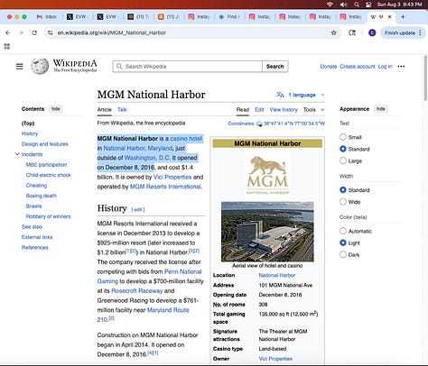 Screenshots above: MGM National Harbor also hosts WWE and other sport events.