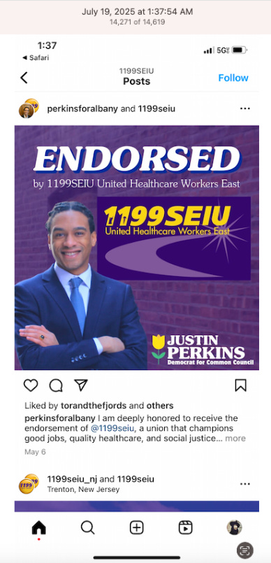 Screenshots above: President, 1199 SEIU. Albany Common Council. Senator. Executive Director & CEO, 1199. Sr Associate, PwC. Board Member of National Coffee Association & Founder of BD Imports. Senator. Executive Director & CEO, 1199. Sr Associate, PwC. Board Member of National Coffee Association & Founder of BD Imports.