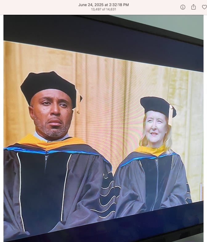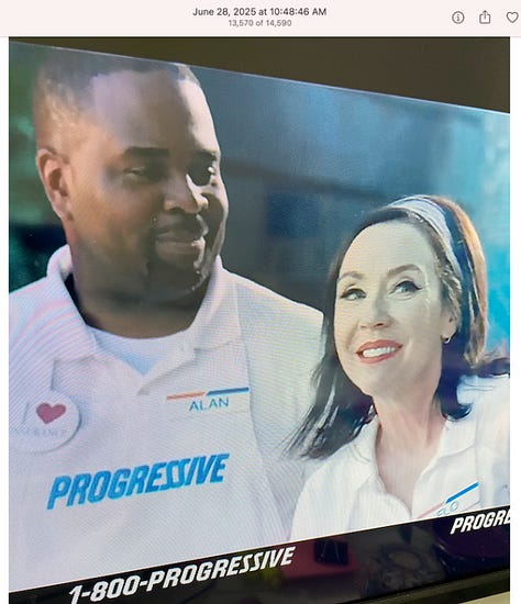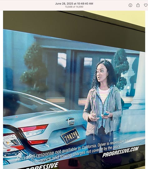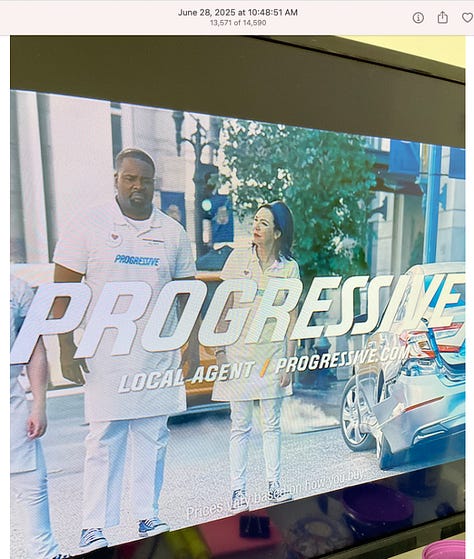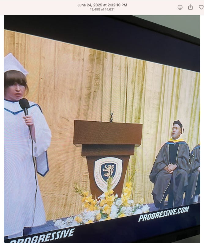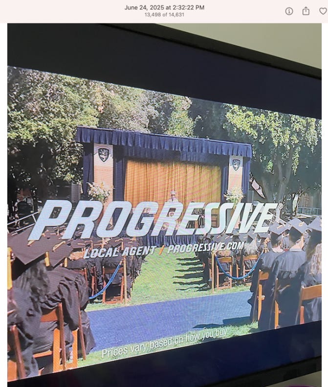 Screenshots above: This Progressive ad is a clever take on pro Palestinian supporters who use the stage to receive their diploma as a platform to send one of their messages. Note the school's symbol is the lion.