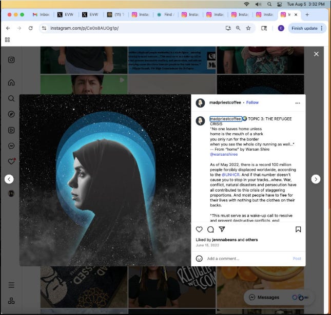 Screenshots above: The "refugee crisis". But they cross several other countries before settling in the U.S. where they have more privileges than Americans! A refugee has a better chance at employment than I do. In fact, whenever I go out, it's mostly POC who are in customer service, waitstaff, in college and who I see with babies. Meanwhile, a young, college-educated couple from the suburbs who are generational Americans can't afford to have a kid and instead adopt a dog.