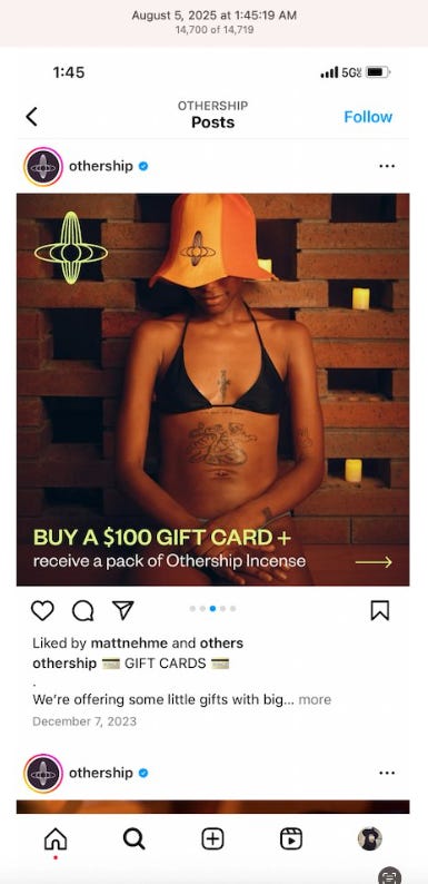 Screenshots above: Other similar brand, marketing boxes - Link to post (midway).