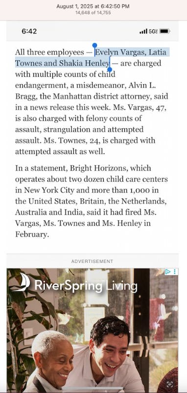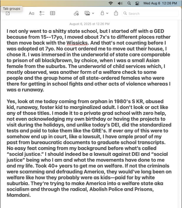 Screenshots above: Same with three POC daycare workers who hit in the head with metal objects, sprayed bleach in the faces, duck taped over the mouth until the face turned red—to toddlers—and laughed about it. How did they get their jobs? How are such disgusting people employed but I'm not? Corrupt, criminally influenced and hijacked NYC agencies, that's how. Reminder: In 2024, Administration for Children's Services allowed 7 kids under 10 to be murdered in abusive households rather than place them elsewhere because to have done so with different race caretakers would’ve been racist. Murder, starvation, torture is preferable over supposed racism is the logic. ACS has been in the news for other shocking incidents. I'm an int'l adoptee and that gets my utmost contempt. I can't wait for the motherfuckers to get their turn.