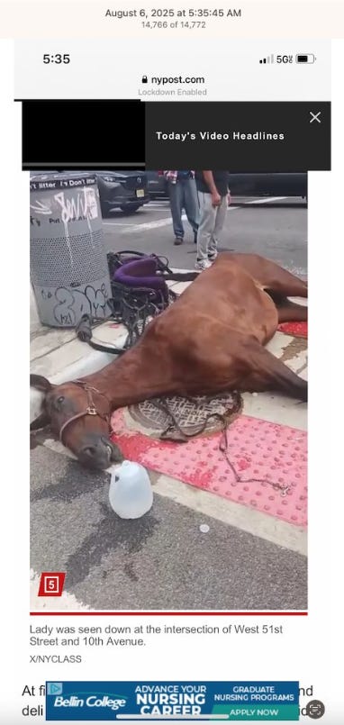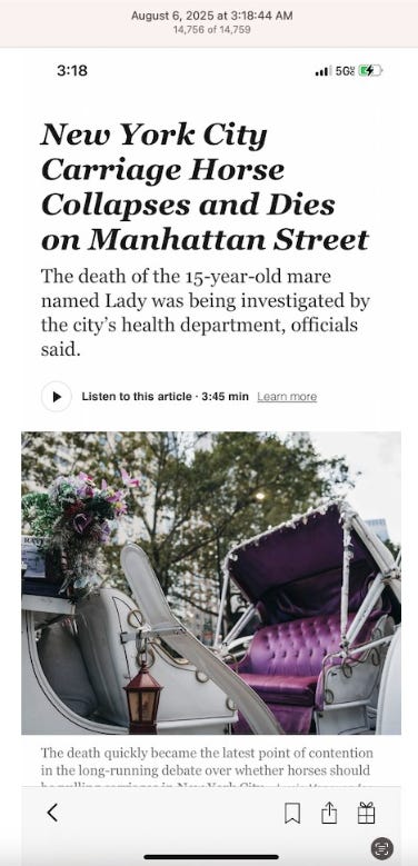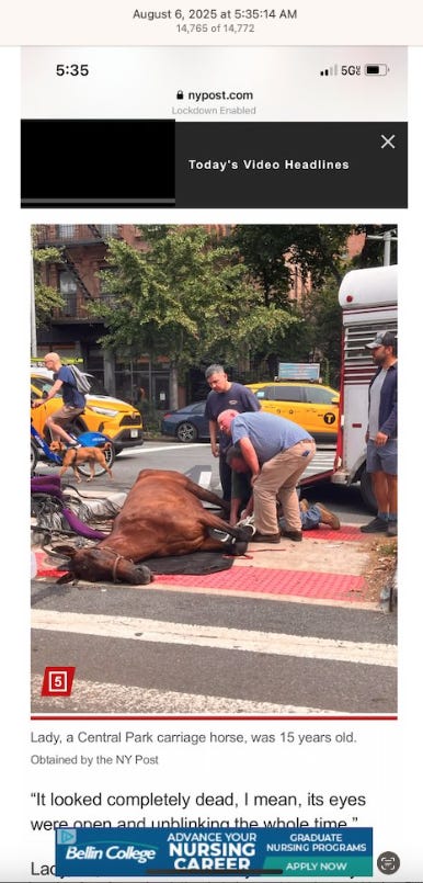 NYT & CARRIAGE HORSE COLLAPSES & DIES