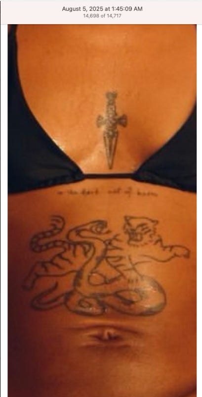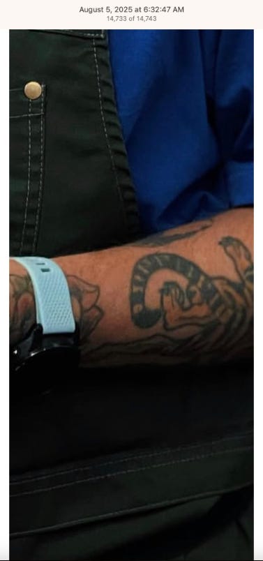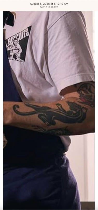 Screenshots above: Big cat tattoos. You can see the face of the lion in the third image.