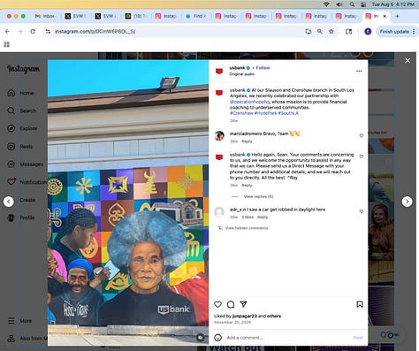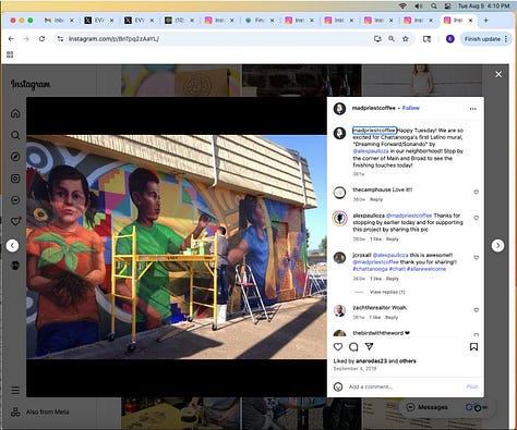 Screenshots above: Looks to be the same muralist, Mad Priest Coffee and US Bank.