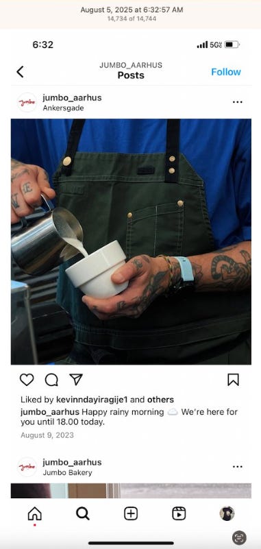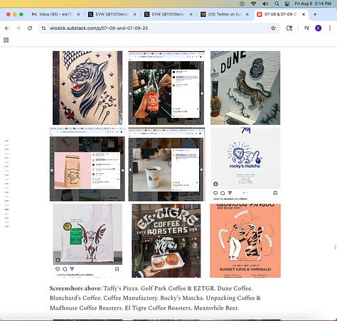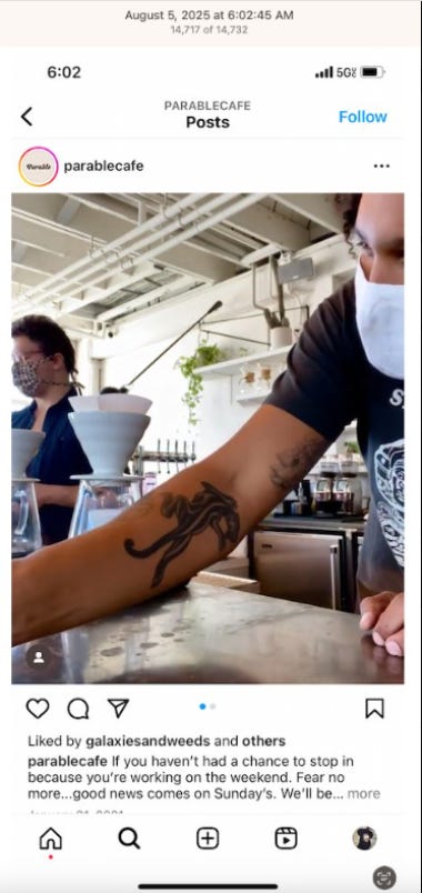 Screenshots above: More panther tattoos. Parable Coffee. Comune Restaurant. Bar Monette.
