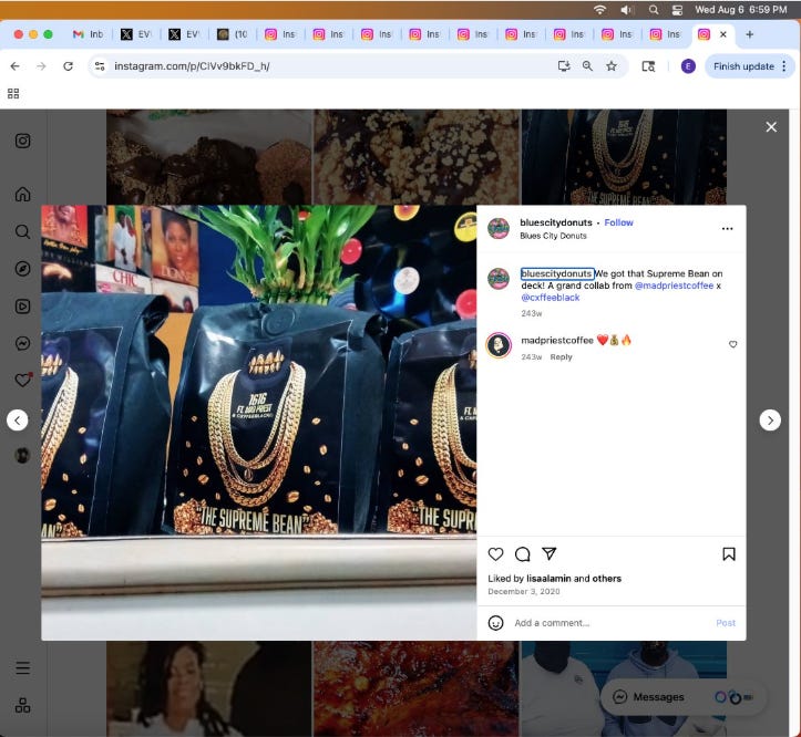 Screenshots above: Same person for Mad Priest Coffee is also for Boston While Black, 5Gum, Nacha (the vendor for SNAP benefits), Trusted Site, WebMD.