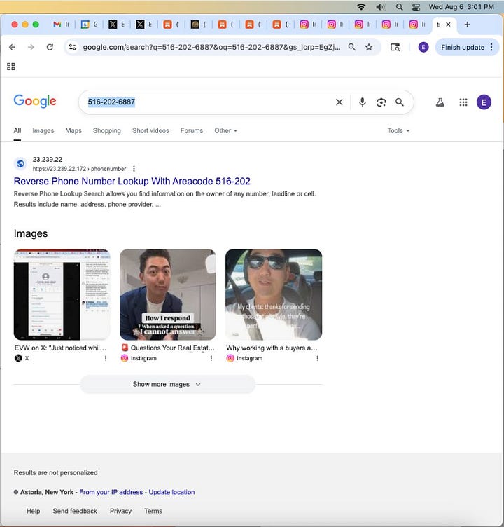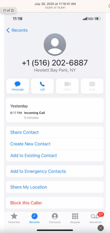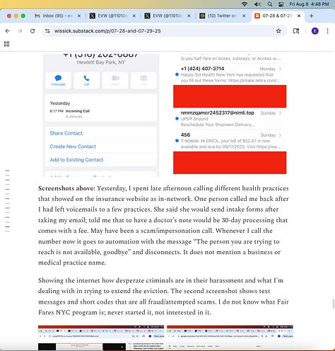 Screenshots above: The police calls today were the second impersonation/scam/runaround, deliberately trying to distress & trigger with the first one when I called to schedule a psych eval and the 516 number called me sounding like she worked for medical practice and would email intake forms.