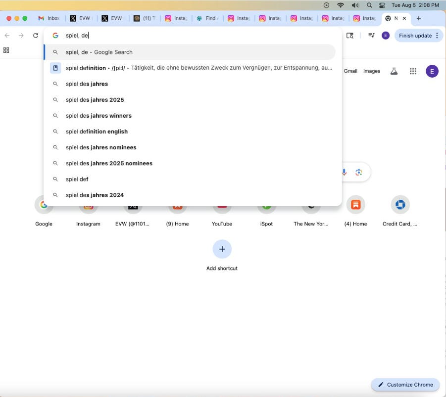 Screenshot above: Googling “spiel” shows German or Swedish or whatever language.