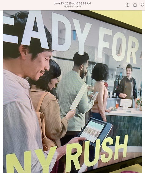 Screenshot above: Seems like all NYC coffeeshops have a merchandise section of all the same things: shirts, mugs, tote bags, and hats. A local coffeeshop doesn't expect you to just buy coffee anymore, but donate to its causes, buy its merchandise, become part of its politics. Gone are the days when customers can rely on their local businesses for friendly, familiar, reliable business. Today's small business expect their customers to be the mouthpiece and militia for its politics—and pay to be so. If I'm acting as your billboard and marketing your politics, you should be paying me.