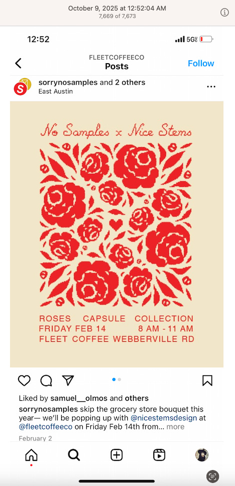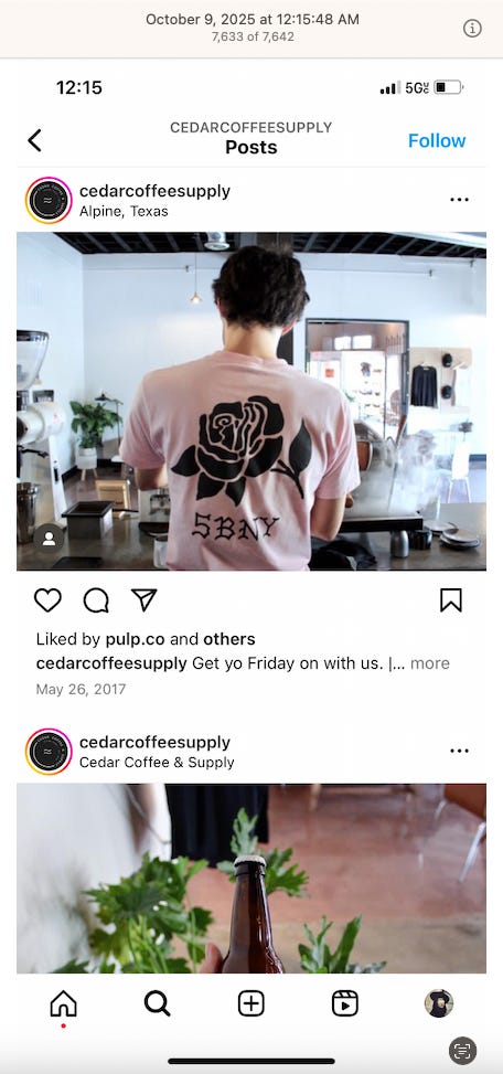 Screenshots above: Fed Up Collective. Fleet Coffee Co. Sons Coffee. Shot Gun House Roasters. Cedar Coffee Supply. Rose Coffee Co. Hacienda Coffee Roasters. Main Street Market. The Little Things Kid’s Clothing Store.