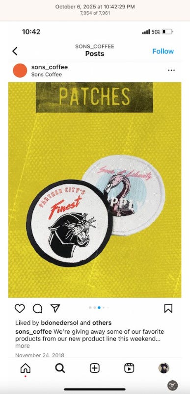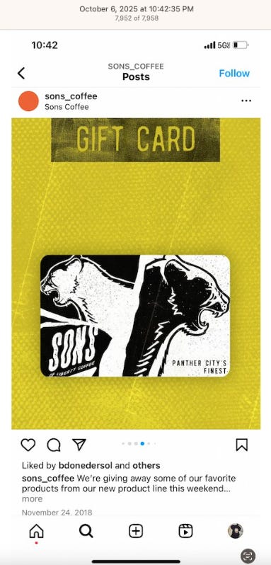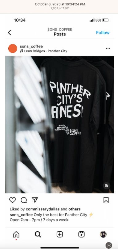 Screenshots above: Sons Coffee, “Panther City’s Finest.”