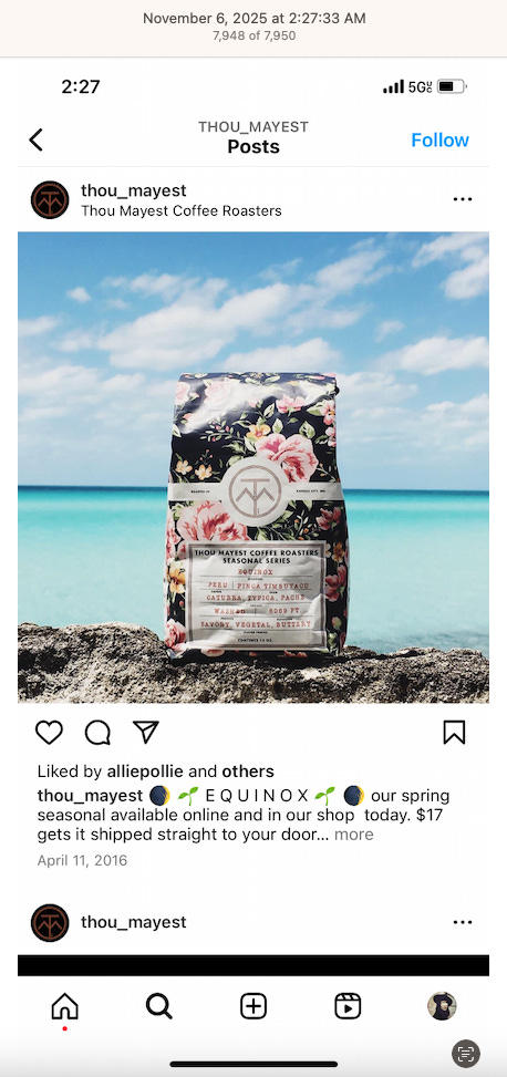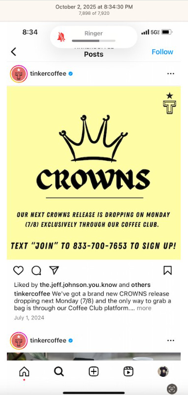 INSTAGRAM - TINKER COFFEE & 800 NUMBERS
