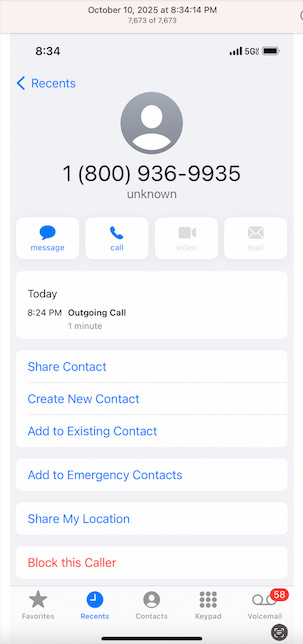 Screenshots above: Tinker Coffee showing big cats in the background and a crown. 800 number shows in the second image. All the more suspect. Every 800 number from my iPhone is fraud. Misdialing 800 #’s from my iPhone almost always connects to LifeProtect. LifeProtect doesn’t make outbound calls, so the criminals have it set up so that as many 800 numbers as possible connect to LifeProtect for those times people misdial. Sometime one 800 number will be LifeProtect and another scam. For example, after the LifeProtect automation does her spiel and if I pressed the number to “opt out”, the automation will claim I won sweepstakes or want me to do a survey.