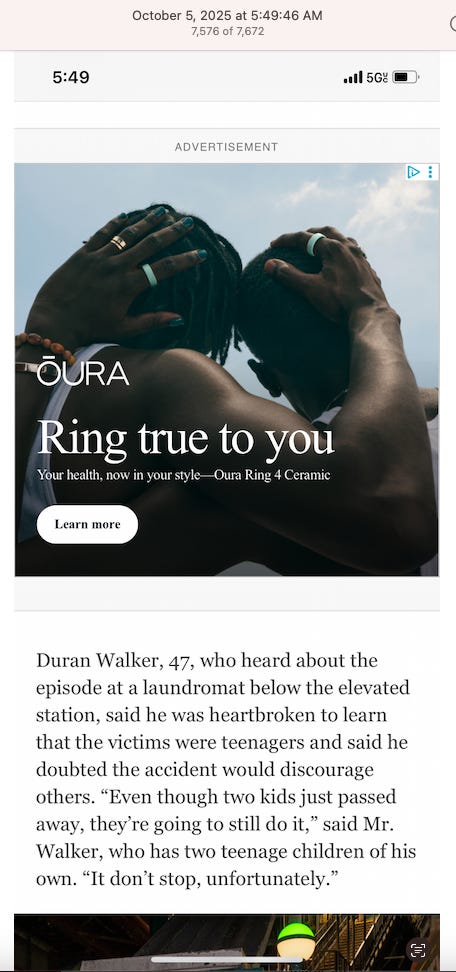 Screenshots above: NYT article dates: 10-01-25. 06-09-25. 04-04-25.
