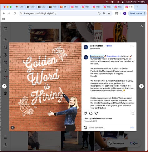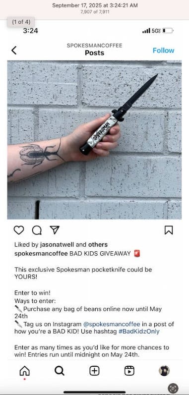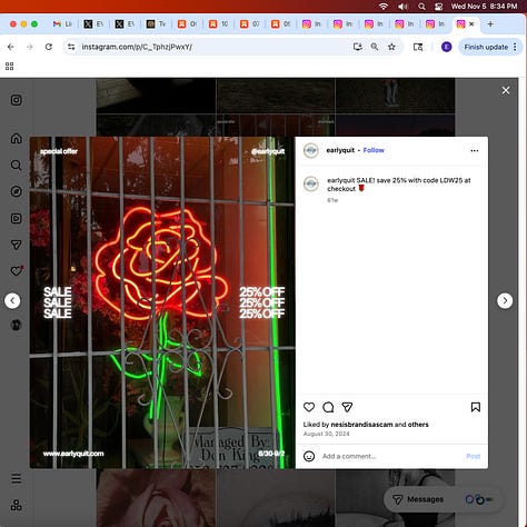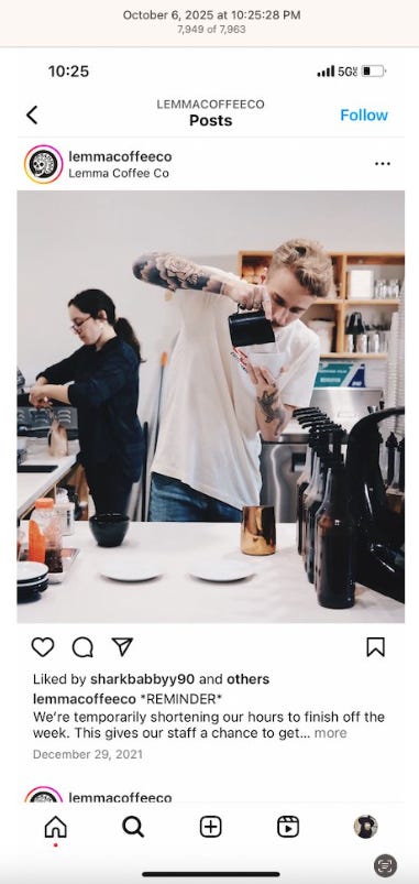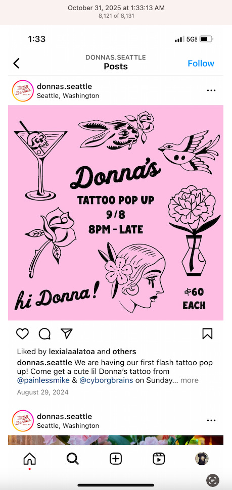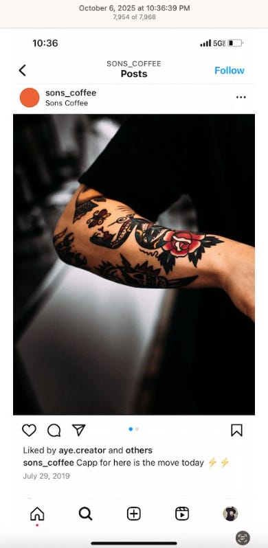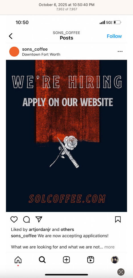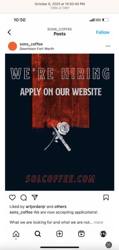 The We’re Hiring post shows a rose and a dagger, another common tattoo, the dagger. Almost all the coffeeshops and restaurants have a We’re Hiring post on their Instagram, a sign of high turn over. I’m sure that should this get out to the public, stories of modern day slavery, aka employment, will abound, or what’s close to modern day slavery in the world’s wealthiest country. What’s conveniently being blamed on billionaires, capitalism, inflation, tariffs.