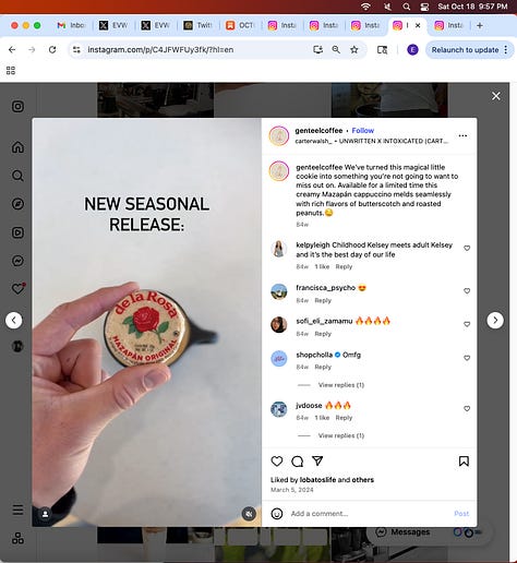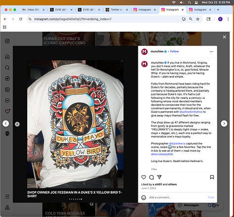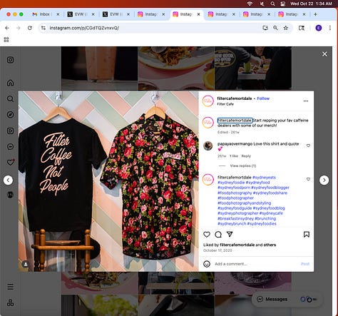 Screenshots above: Filter Coffee (political connotation, ie “Filter Coffee Not People”). Munchies and Duke’s Mayo. Gucci. Hacienda. Grifter Brewing Co. Ssweatshop. Culture Kings. Valor Coffee.