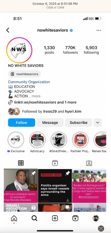 INSTAGRAM - ROARING LION… & NO WHITE SAVIORS