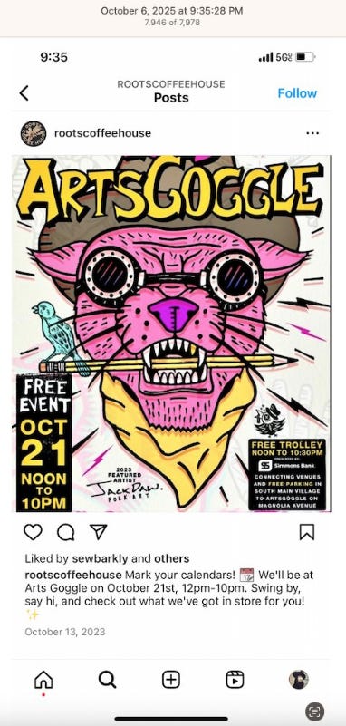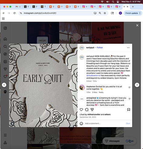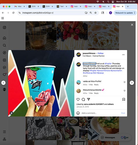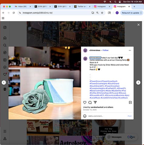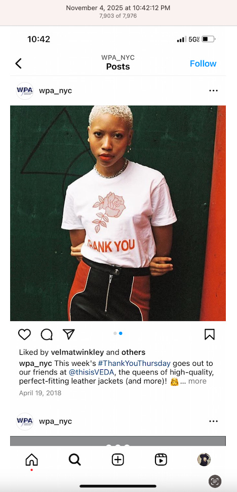 Screenshots above: Early Quit underwear brand. Women’s Prison Association. Vino Vinyasa Yoga. Democratic Socialists, Pittsburgh Chapter. Veda, clothing. Thou Mayest Coffee Roasters.