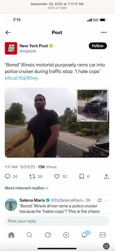 October 4th, 5th and 6th, I did not post on X. That was the longest I went without posting on X since before January 20th, 2023, the day a doxxing email was sent to my employer calling me racist that resulted in my immediate termination.