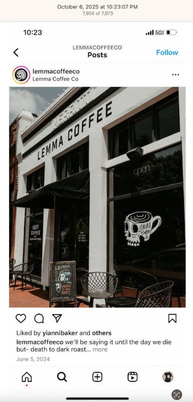 Screenshots above: Lemma Coffee.