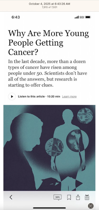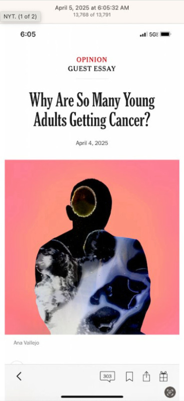 NYT - “WHY ARE SO MANY YOUNG PEOPLE GETTING CANCER?”