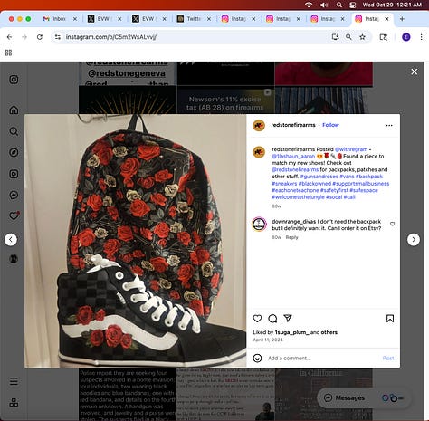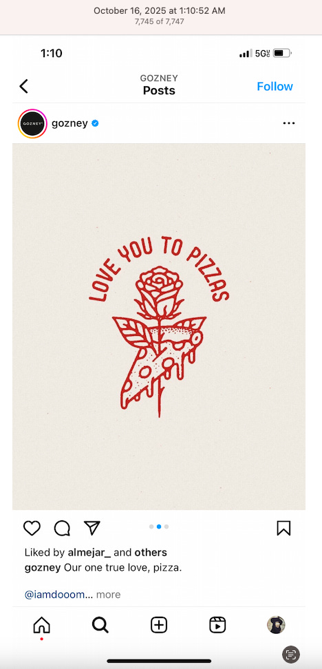 It’s a discrepancy to say the least when there’s a trend with small businesses showing weapons on their Instagram. Weapons, instruments of violence, shouldn’t be normalized. “Tonight we side.” A pizzeria shouldn’t evoke violence.